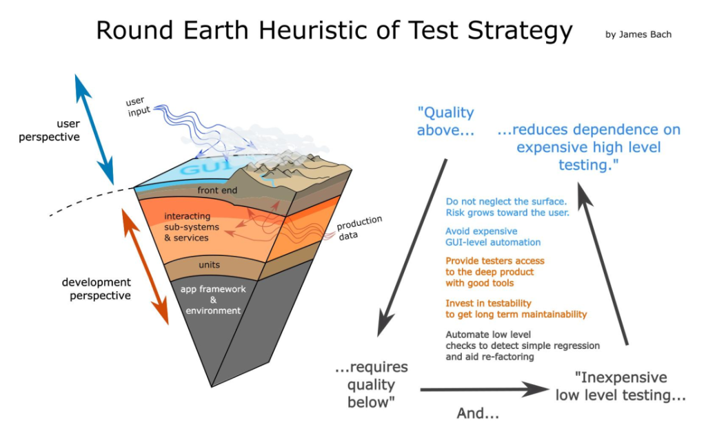 I feel the round earth model is useful in quickly describing a general product to be tested and a high-level approach to that automation. I particularly like the inclusion of data into the model. I don’t discount the “traditional” test pyramid however as I feel it conveys something different. While the round earth model focuses on the product and the “test problem”, the test pyramid focuses on the distribution of automated tests/checks. The pyramid definitely lacks context but for those who understand that context, I think it serves a purpose. This neatly serves a complementary purpose so thank you for posting!